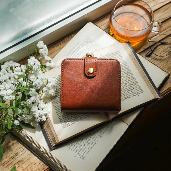 素材は、イタリアンレザーの本革を使用。しっかりとした風合いと鮮やかな色が特徴です。がま口の開け閉めもスムーズで、手のひらサイズのかわいらしいデザインが人気です。母の日のギフトや、自分へのご褒美にもぴったりです。20代から50代の幅広い年代におすすめの、大人かわいいがま口財布です。