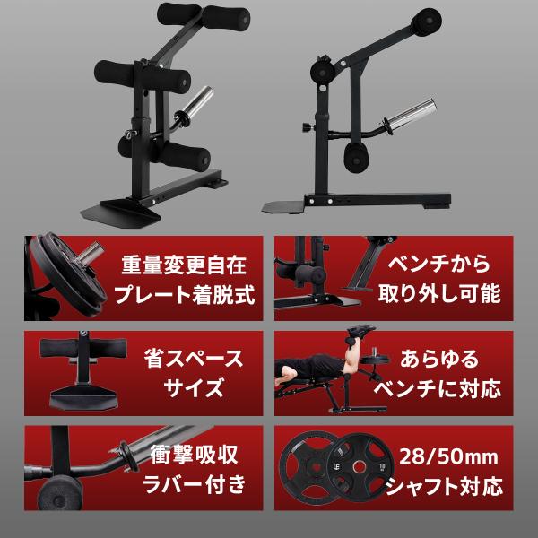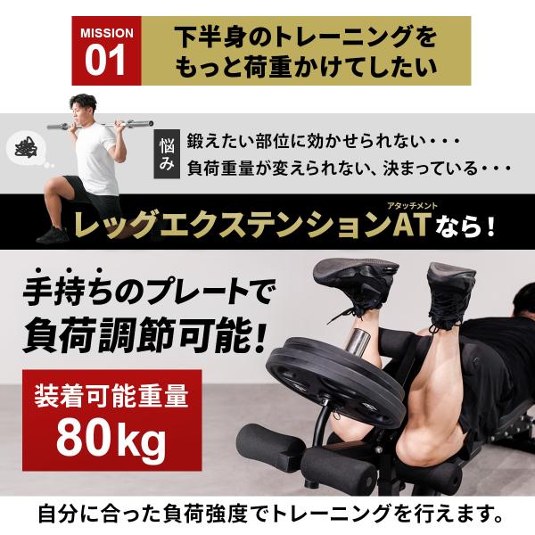 レッグエクステンション アタッチメント 装着可能重量80kg サイズ調整 取り外し 28mm|50mm径プレート対応 筋トレ 下半身強化 レッグカール 太もも [1年保証]