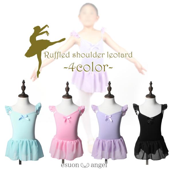 4カラー選べる バレエ レオタード 肩フリル 胸元リボン仕様 子供 大人 キッズ ジュニア 大人 バレエ用品 レッスン 練習着 格安 子ども 新体操