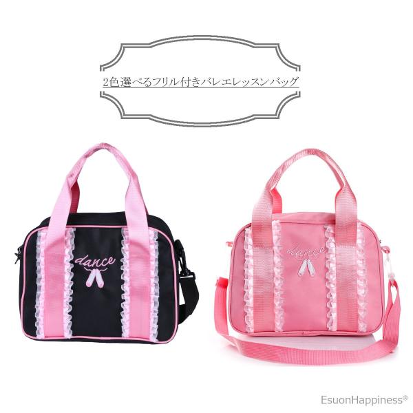 2色選べる バレエ レッスンバッグ フリル ピンク ブラック キッズ ジュニア 大人 バレエ用品 稽古 発表会 格安 子ども 新体操 送料無料