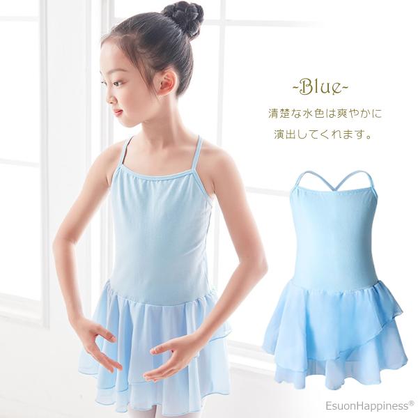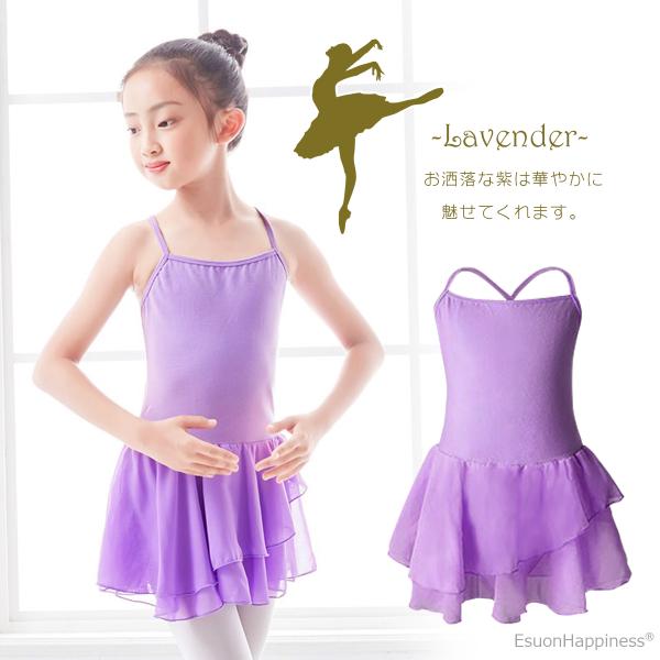 4カラー選べる バレエ キャミソール レオタード ティアード スカート シフォン クロスストラップ 子供 キッズ ジュニア バレエ用品 レッスン 練習着 送料無料