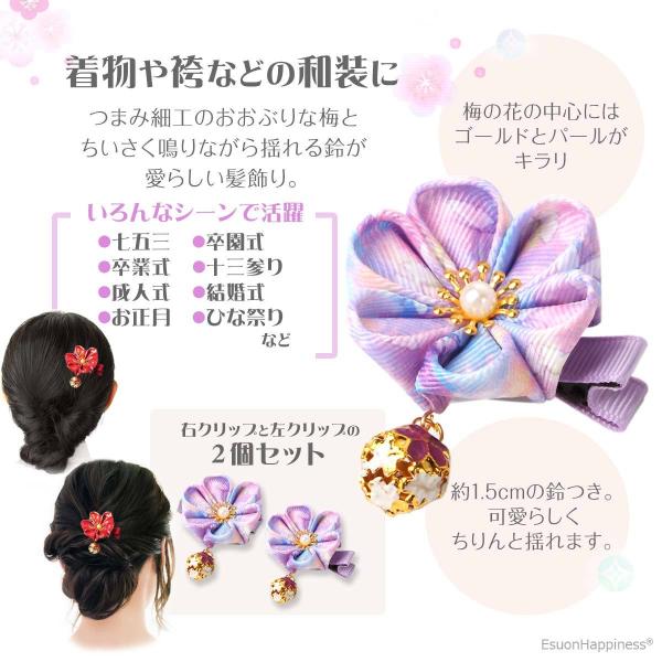 商品名 つまみ細工 髪飾り 鈴梅 2個 セット すず 梅 卒園式 卒業式 七五三 成人式 振袖 結婚式 踊り用 礼装 おしゃれ キッズ 子供 子ども ヘアアクセサリー