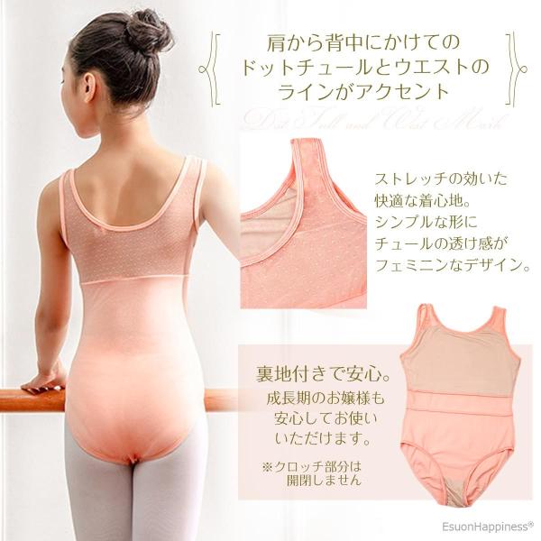バレエ レオタード ドット チュール 4カラー選べる シースルー ノースリーブ 水玉 子供 キッズ ジュニア バレエ用品 レッスン 練習着