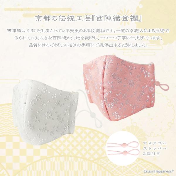 マスク 日本製 秋冬 冬用 大人用 暖かい 西陣織マスク 布マスク 洗える ゴム ストッパー 付 ピンク 金襴 ファッション 和柄 麻の葉文様 成人式 卒業式 母の日
