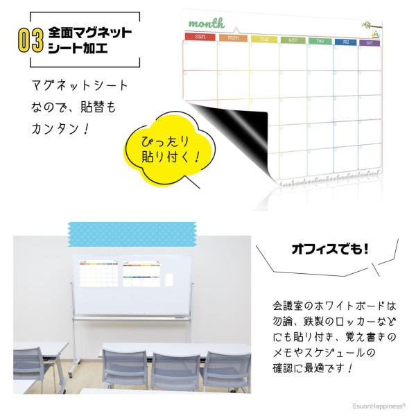 ホワイトボード マグネットシート カレンダー 3シートセット ホワイトボードマーカー イレイザー 一式付き 冷蔵庫 予定表 月間 週間 日間 スケジュール 新年度