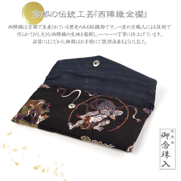 商品名 数珠入れ 数珠袋 西陣織 金襴 選べる 男性用 念珠袋 念珠入れ 西陣 日本製 京都 juzuire 母の日 0507 風雷 風雷金 輪宝金 輪宝銀 金青白花 丸小紋黒 鳥獣戯画