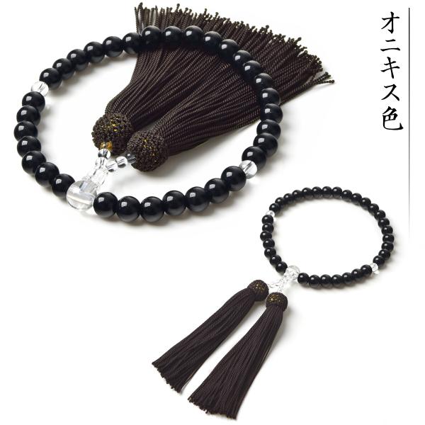 数珠 女性 男性 選べる 8mm 数珠入れ 袋付き 女性用 男性用 数珠袋 ブレスレット 本水晶 紅水晶 オニキス 念珠 略式