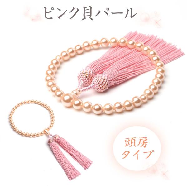 数珠 女性用 選べる 貝パール 本水晶 8mm 高級 数珠入れ 付 水晶 パール 頭房 念珠