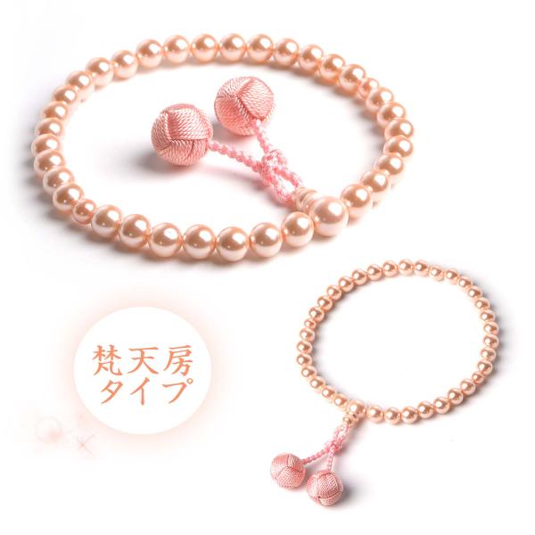 数珠 女性 女性用 選べる 貝パール 8mm 西陣織金襴 数珠袋 付き パール 頭房 梵天房 梵天 念珠