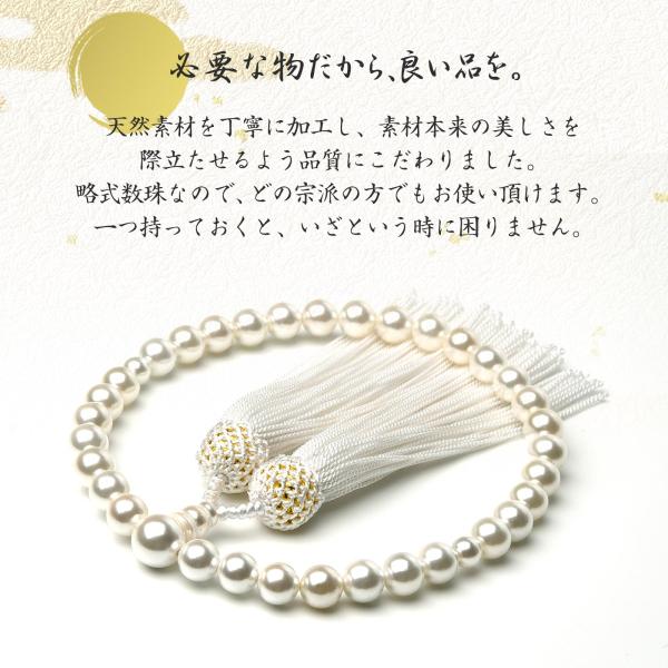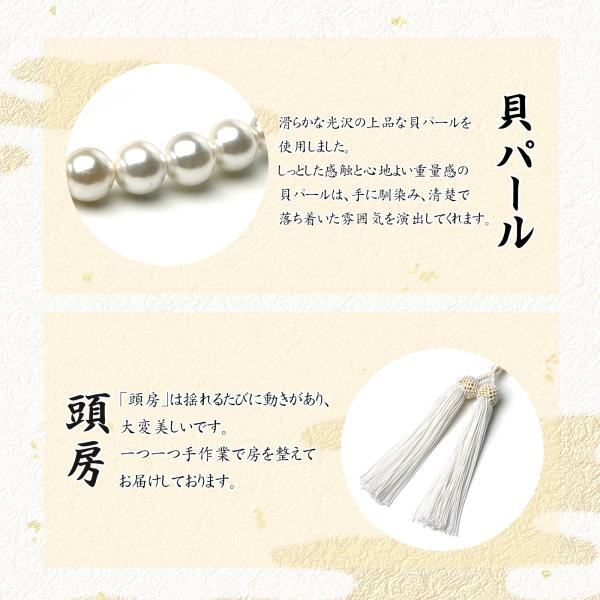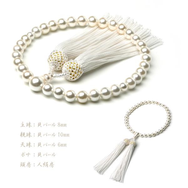 数珠 女性 女性用 本貝パール 8mm 西陣織金襴 数珠袋 付き パール 頭房 念珠