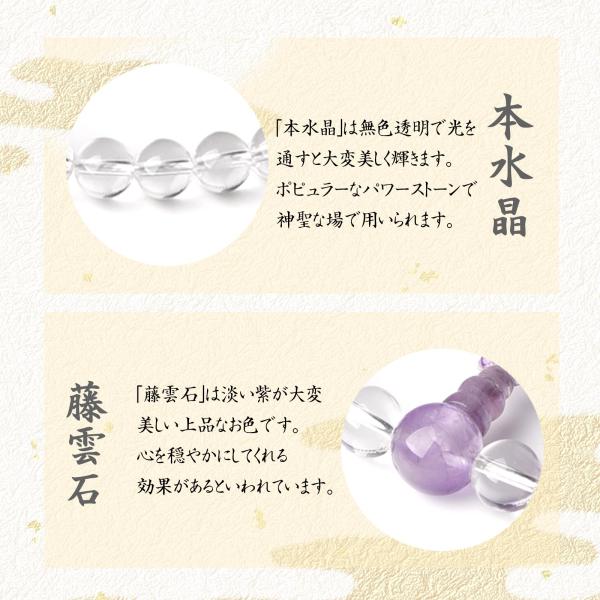 数珠 女性 女性用 本水晶 藤雲石 高級 数珠入れ 付 8mm ローズアメジスト 念珠 天然石