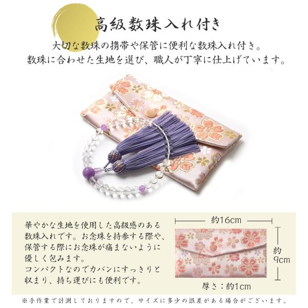 数珠 女性 女性用 紫水晶 本水晶 8mm アメジスト 高級 数珠入れ 付 念珠 天然石