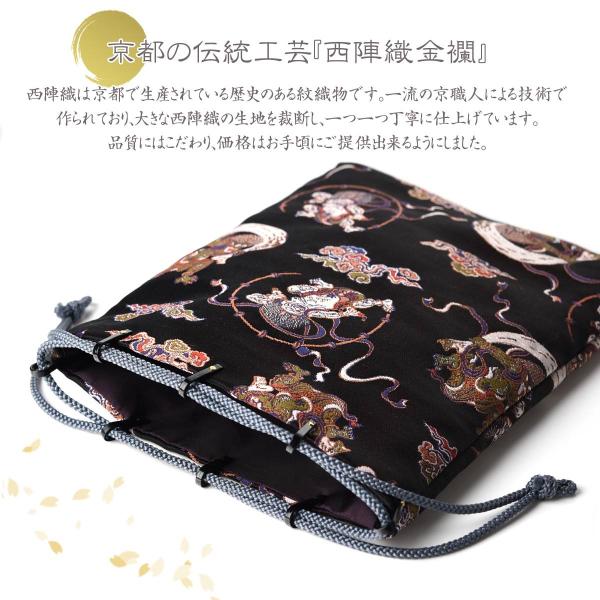 商品名 御朱印帳 おしゃれ 巾着 袋 大判 大 かわいい 選べる ポーチバッグ 巾着袋 きんちゃく 巾着大 西陣織 金襴 西陣 朱印帳 納経帳 収納袋 日本製 京都 jx ss001 風雷 風雷金 双麒麟 鳥獣戯画 輪宝金 輪宝銀 金青白花 丸小紋黒