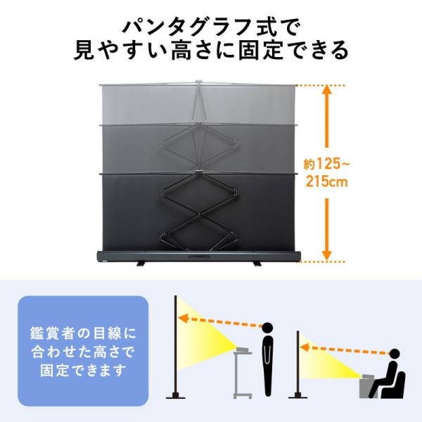 プロジェクタースクリーン 自立式 100インチ フルHD 手動 簡単設置ワイド 床置き式 パンタグラフ 4K 大型 16:9 家庭用 ホームシアター イベント 持ち運び EEX-PSY2-100HDV イーサプライ