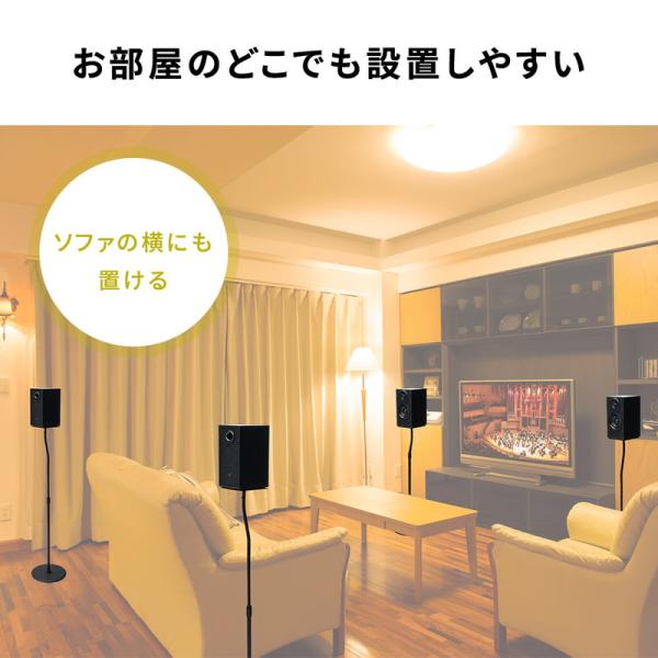 スリムな見た目のスピーカースタンドです。高さ調整が可能なので、耳に近い高さにスピーカーを設置して、より良い音を楽しめます。