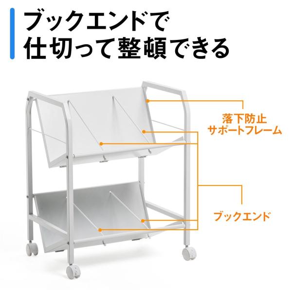 ファイルワゴン 2段 A4対応 キャスター付 本 書類 収納 仕切り スチール ラック 斜め 天板 カバン置き 100-WG003W サンワサプライ PCワゴン PCラック