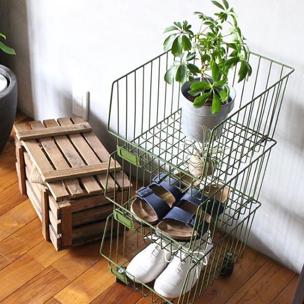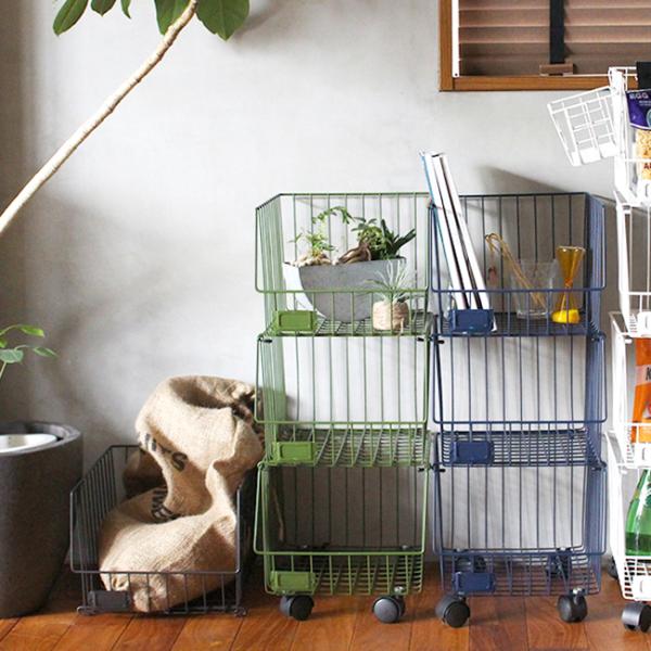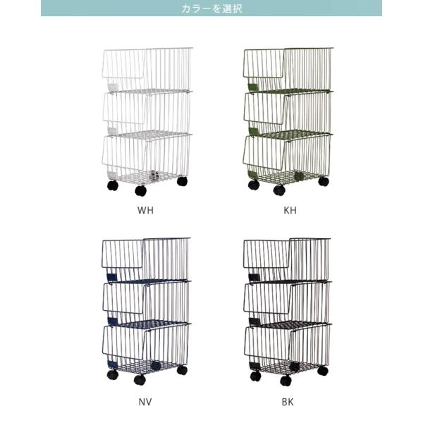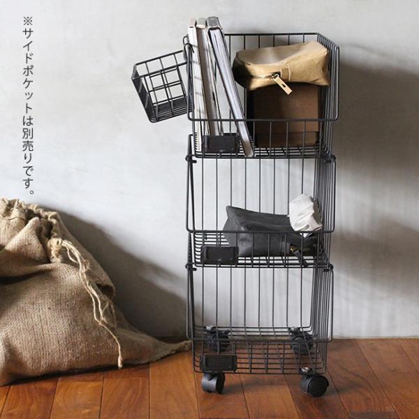 【即納】ワゴン 3点セット キャスター付き ワイヤーバスケット スタッキング 収納 カゴ おしゃれ スチール バスケットシェルフ 3段 BSS-PL3-001アデペシュ