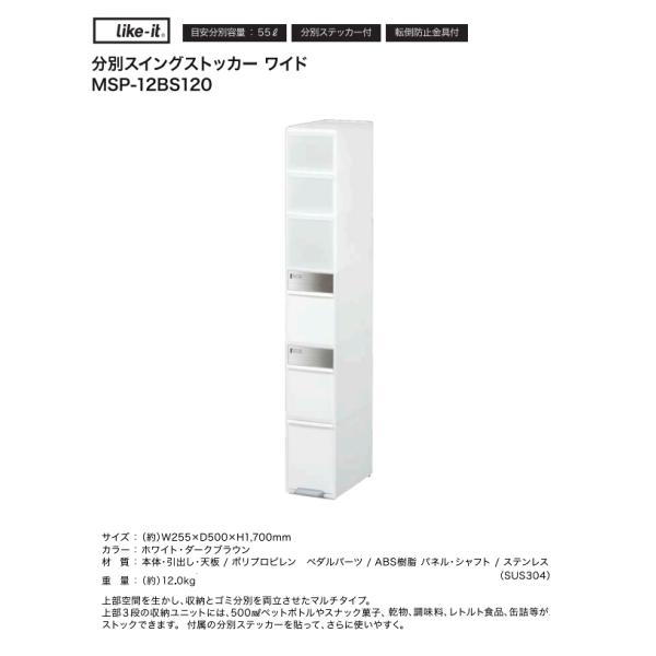 【即納】ライクイット 分別ゴミ箱 6段 ダストボックス 縦型 キッチン ストッカー 分別スイングストッカー ワイド MSP-12BS120 likeit