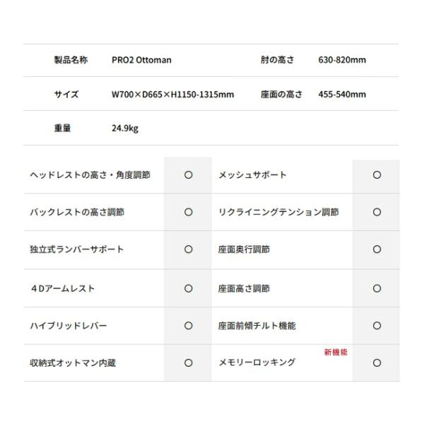 新基盤「エルゴヒューマンプロ2」のオットマン内蔵モデルです。