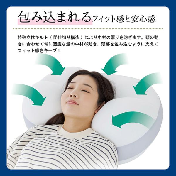 また、特殊立体キルト(間仕切り構造)により中材の偏りを防ぎます。