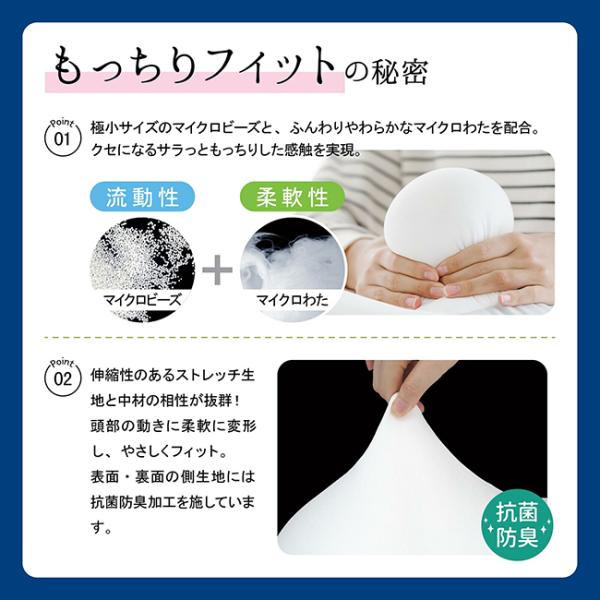 【素材】詰め物/マイクロビーズ+マイクロわた、枕カバー/ナイロン92%,ポリウレタン8%※抗菌防臭加工