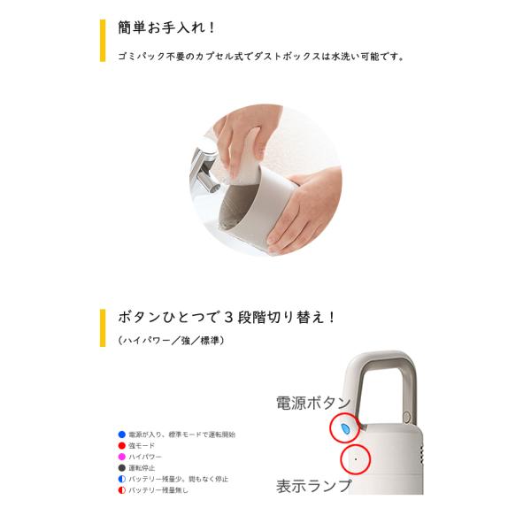 またゴミパック不要のカプセル式で水洗いが可能です。