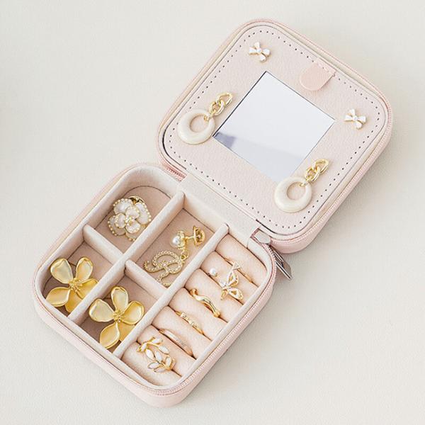 【処分特価30%オフ】アクセサリーケース 鏡付き コンパクト 持ち運び ジュエリーケース アクセサリーボックス ジュエリーボックス 収納 ギフト プレゼント