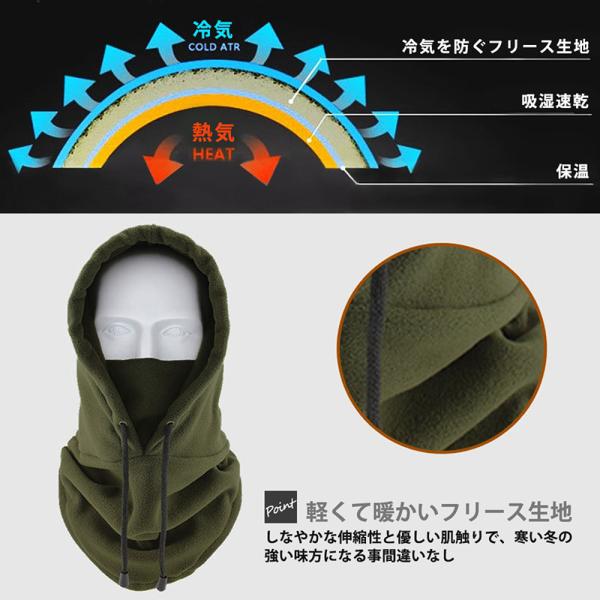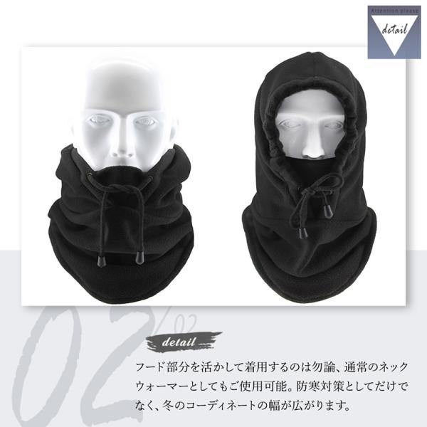 フリース素材で暖かい フード ネックウォーマー