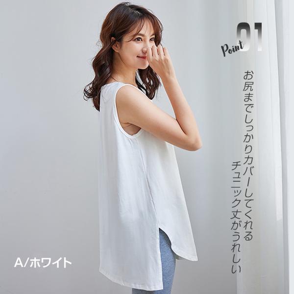 タンクトップ レディース インナー ノースリーブ 綿 大きい コットン 綿 ロング丈 大きいサイズ 無地 ラウンド スリット カットソー トップス シンプル