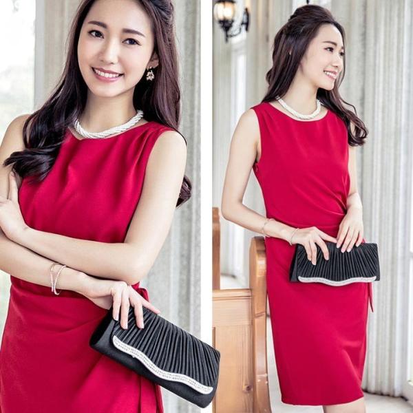 パーティーバッグ 大きめ クラッチ ビーズ 結婚式 プリーツ パーティー エレガント ビジュー サテン フォーマル ディナー 収納力抜群