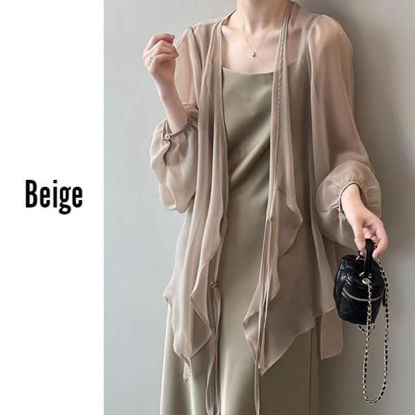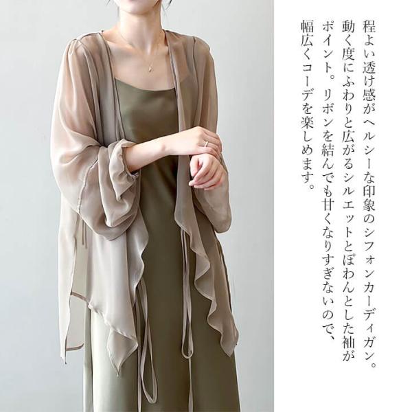 カーディガン カーデ コーデ トップス シフォンカーディガン バルーンスリーブ サマーカーディガン UVカットアウター 長袖 レディース シンプル 春 夏 UVカット シフォン リボン 日焼け止め 紫外線対策 カジュアル ゆったり 大きいサイズ OL オフィス 通学 出かけ 春コーデ オフィス 通勤 通学 UV対策 薄手 羽織 シースルー 透かし 夏