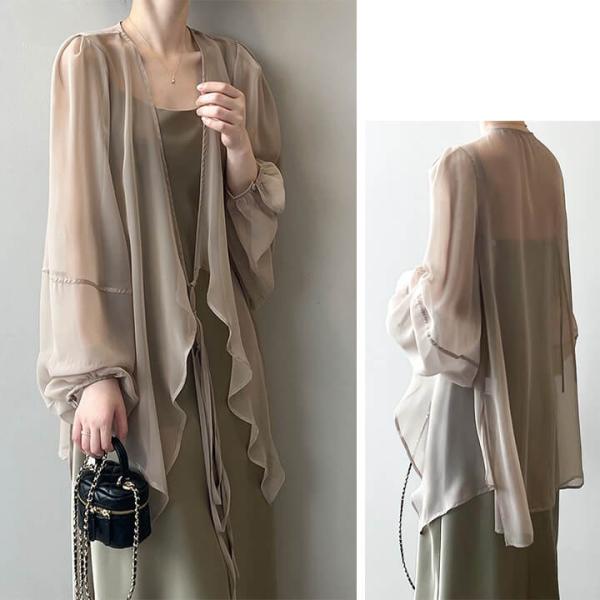 カーディガン カーデ コーデ トップス シフォンカーディガン バルーンスリーブ サマーカーディガン UVカットアウター 長袖 レディース シンプル rt505