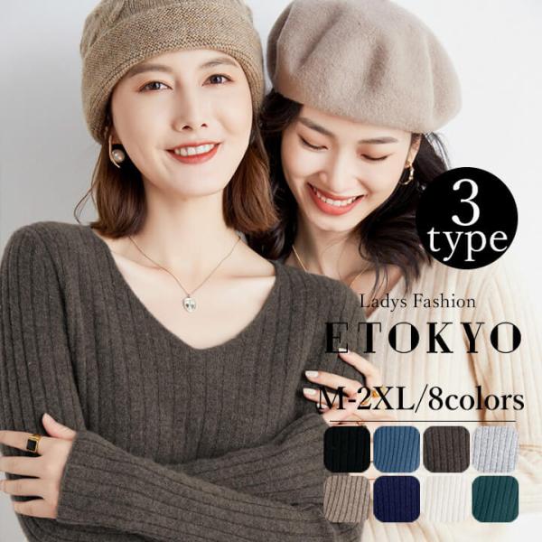 ニット レディース カジュアル 3タイプ 選べる Uネック Vネック Hネック ハイネック リブ 凹凸感 シンプル ロングシーズン yctops27