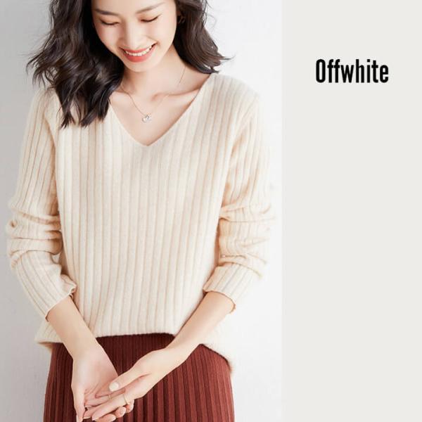 リブニットが縦のラインを強調し、スタイル良く見せてくれます。