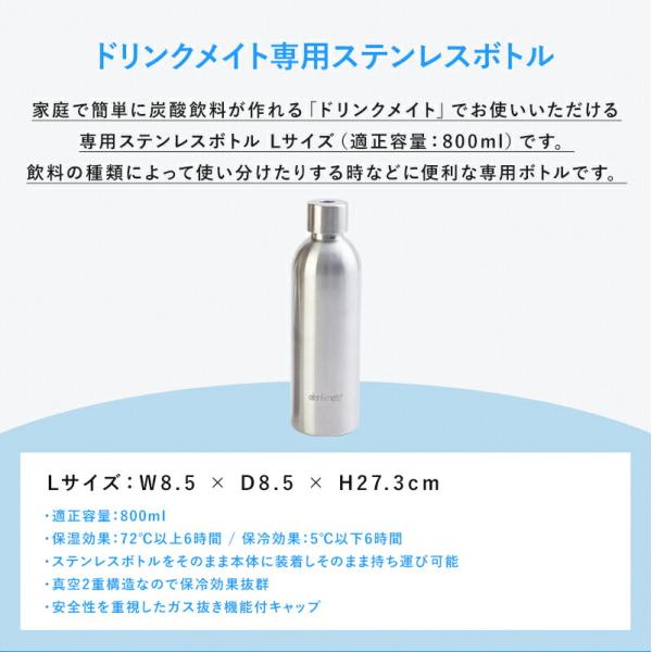 ドリンクメイト専用ステンレスボトル Lサイズ 炭酸シリンダー 炭酸 炭酸水 飲料 ジュース ポイント利用