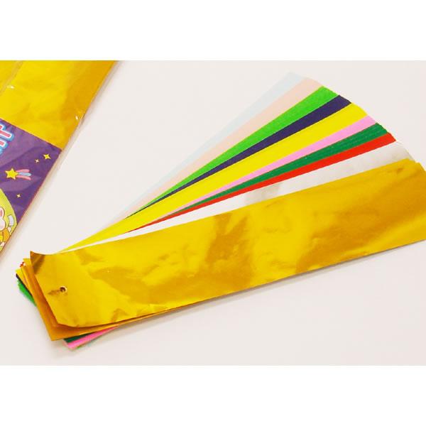 七夕用短冊[たんざく] 穴あき・こよりなし【商品番号】 No.4968 500枚No.4970 1000枚【商品説明】 七夕飾りにおすすめ商品です。穴が空いているのですぐにこよりを通すことが出来ます。【セット内容】 100枚の内訳 (金5枚・銀5枚・赤11・緑11枚・青11枚・ピンク11枚・黄11枚・うすピンク12枚・黄緑11枚・水色12枚 )【大きさ】 26.2cm×5.4cm【素材】 上質紙【備考】 裏面は無地、折り紙的感覚。