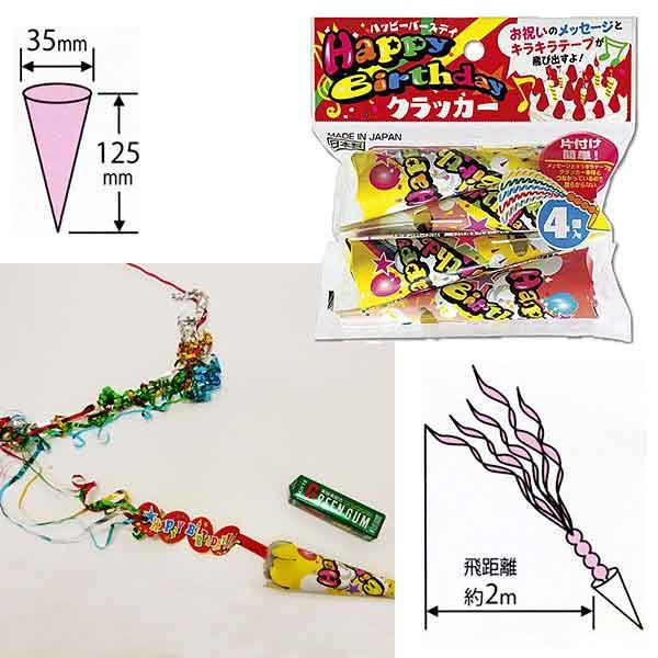 音が出る8cmくす玉 「祝お誕生日おめでとう(無地たれ幕付き)」と散らからないお誕生日クラッカー4個セット