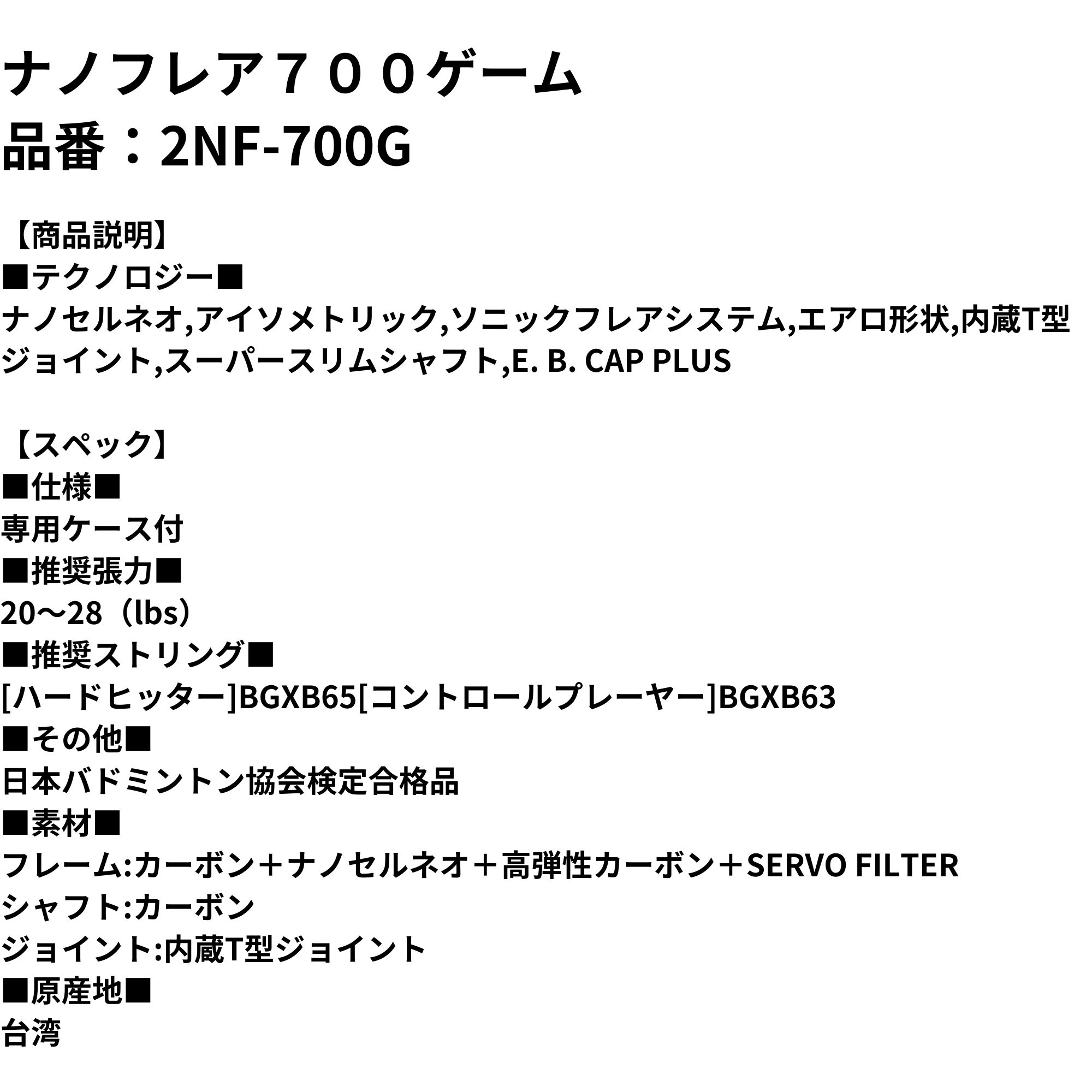 【LINE追加で5%OFFクーポン配布中】【ガット代・張り代無料】ヨネックス YONEX バドミントンラケット ナノフレア700ゲーム 2NF-700G バドミントン【最短出荷】