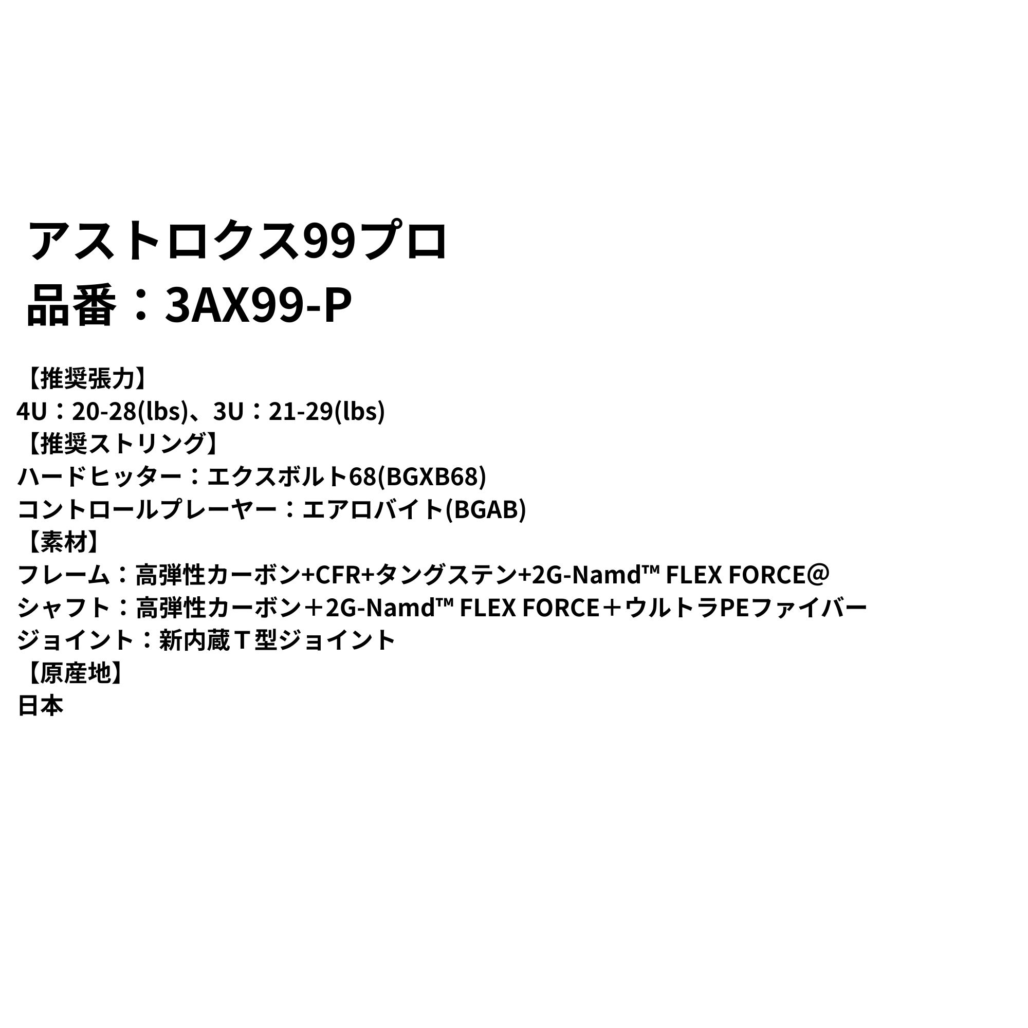 【最短出荷】【フレームのみ】【LINE追加で5%OFFクーポン配布中】ヨネックス YONEX バドミントンラケット アストロクス99プロ 3AX99-P バドミントン
