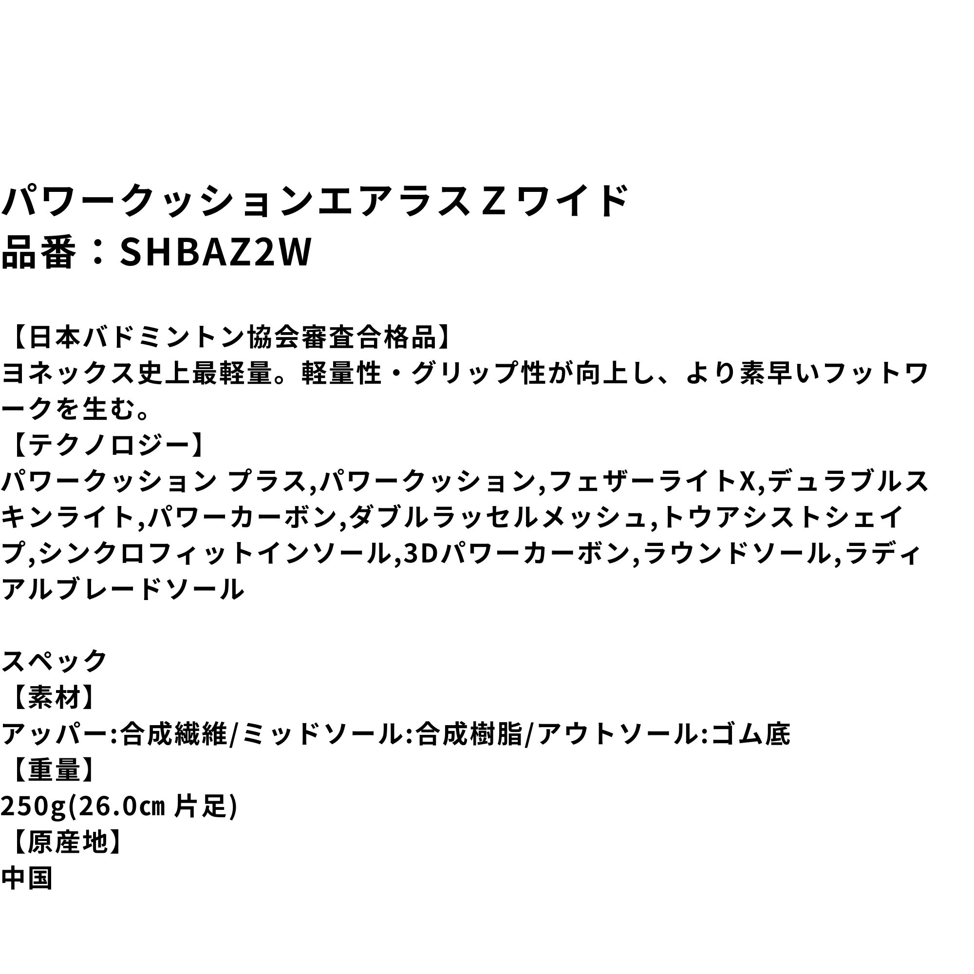 【LINE追加で5%OFFクーポン配布中】【最短出荷】ヨネックス YONEX バドミントンシューズ パワークッションエアラスZワイド SHBAZ2W バドミントン