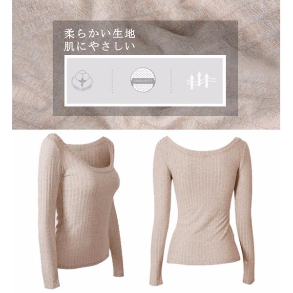 深Uネック 縦ライン 長袖 インナー 胸元 セクシー
