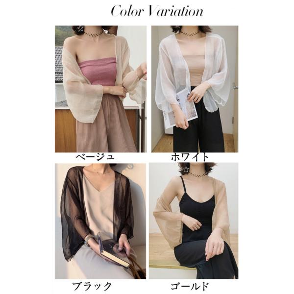 カーディガン レディース 透け感 涼しい ショート丈 ボレロ ガウン 羽織 シアー シースルー 無地 シンプル ベーシック カジュアル ラフ ゆったり ゆったり 日焼け対策 冷房対策 ブラック ベージュ ホワイト ゴールドdt063d4d4m3