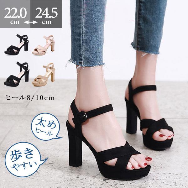サンダル レディース ヒール 太めヒール 高め 10センチ 8センチ 厚底 かかとあり ヒールサンダル ハイヒール 小さいサイズ 大きいサイズ 歩きやすい