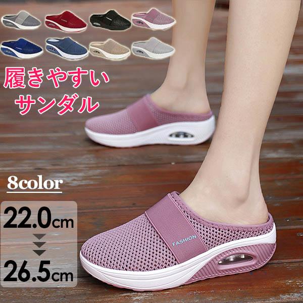 夏新作 サンダル スリッパ レディース 履きやすい 厚底 エアクッション スリッポン ウォーキングシューズ メッシュ サボサンダル