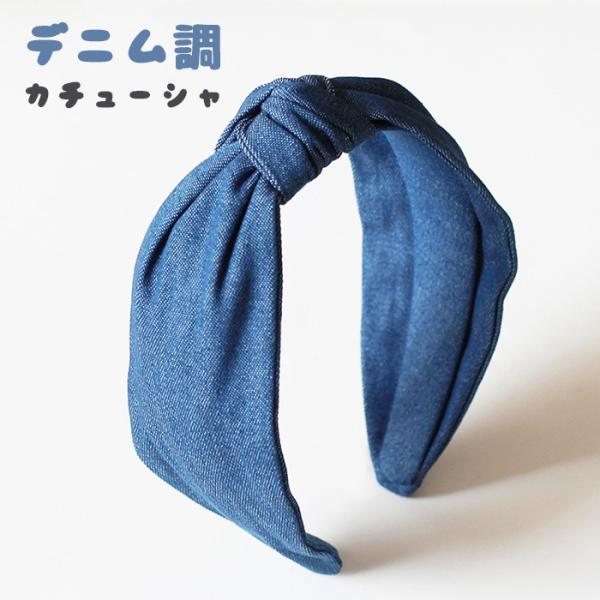 ヘアバンド レディース デニム調 カチューシャ 幅広 太め ヘアアクセサリー シンプル おしゃれ 無地 クロス結び ヘッドバンド 髪留め 大人可愛い 上品 きれいめ