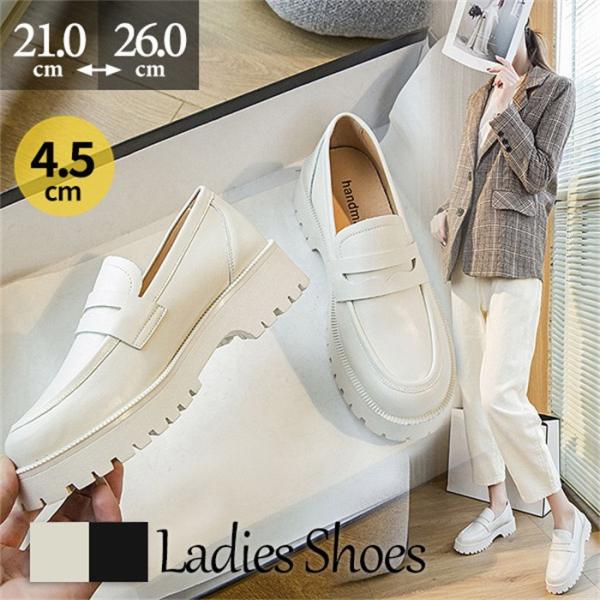 厚底ローファー レディース コインローファー 4.5cmヒール 痛くない 歩きやすい 靴 軽量 トラックソール マニッシュシューズ シンプル 大人 カジュアル