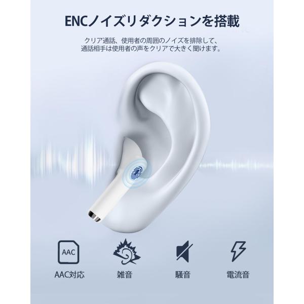最新のBluetooth 5.3と高忠実な音質:このワイヤレスイヤホンは先進的なBluetooth 5.3技術とアンテナ技術を採用し、15mのBluetooth範囲で高速かつ安定した伝送を提供します。内蔵の高音質オーディオチップが音楽の細部まで捉え、鮮明な高音と適度な低音のある豊かなサウンドを実現します。また、ENC通話ノイズキャンセリング技術により、通