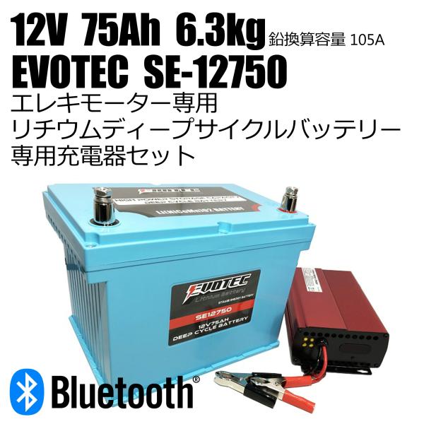 12V 75Ah Bluetooth内蔵リチウムバッテリー SE-12750 充電器コンビセット スマートフォンで電圧等を確認 EVOTEC/エヴォテック 爆買