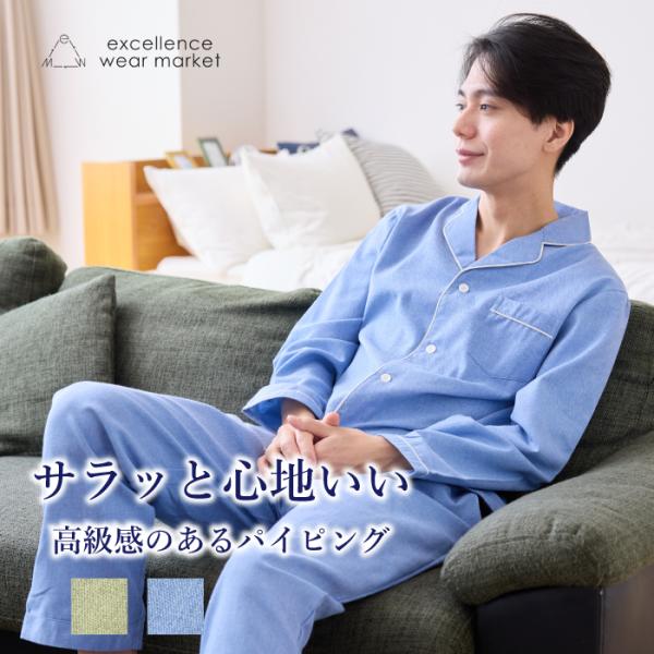 パジャマ メンズ 長袖 前開き ルームウェア 秋冬 おしゃれ 大きいサイズ 入院 部屋着 ペアルック 上下セット かわいい 無地 寝間着 パイピング 男性 紳士 M L LL