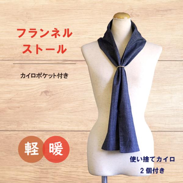 カイロポケット フランネル マフラー 使い捨てカイロ ネックウォーマー 播州織 綿100% おしゃれ 暖かい 防寒 首 背中 腰 日本製 無地 チェック ストール 就寝